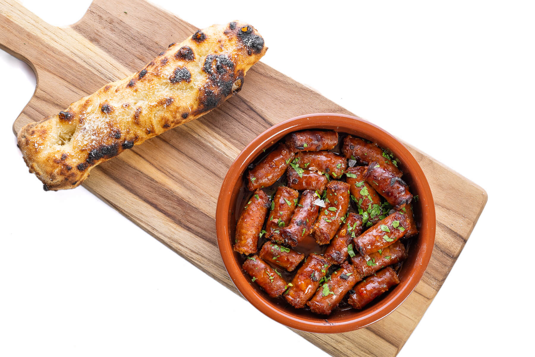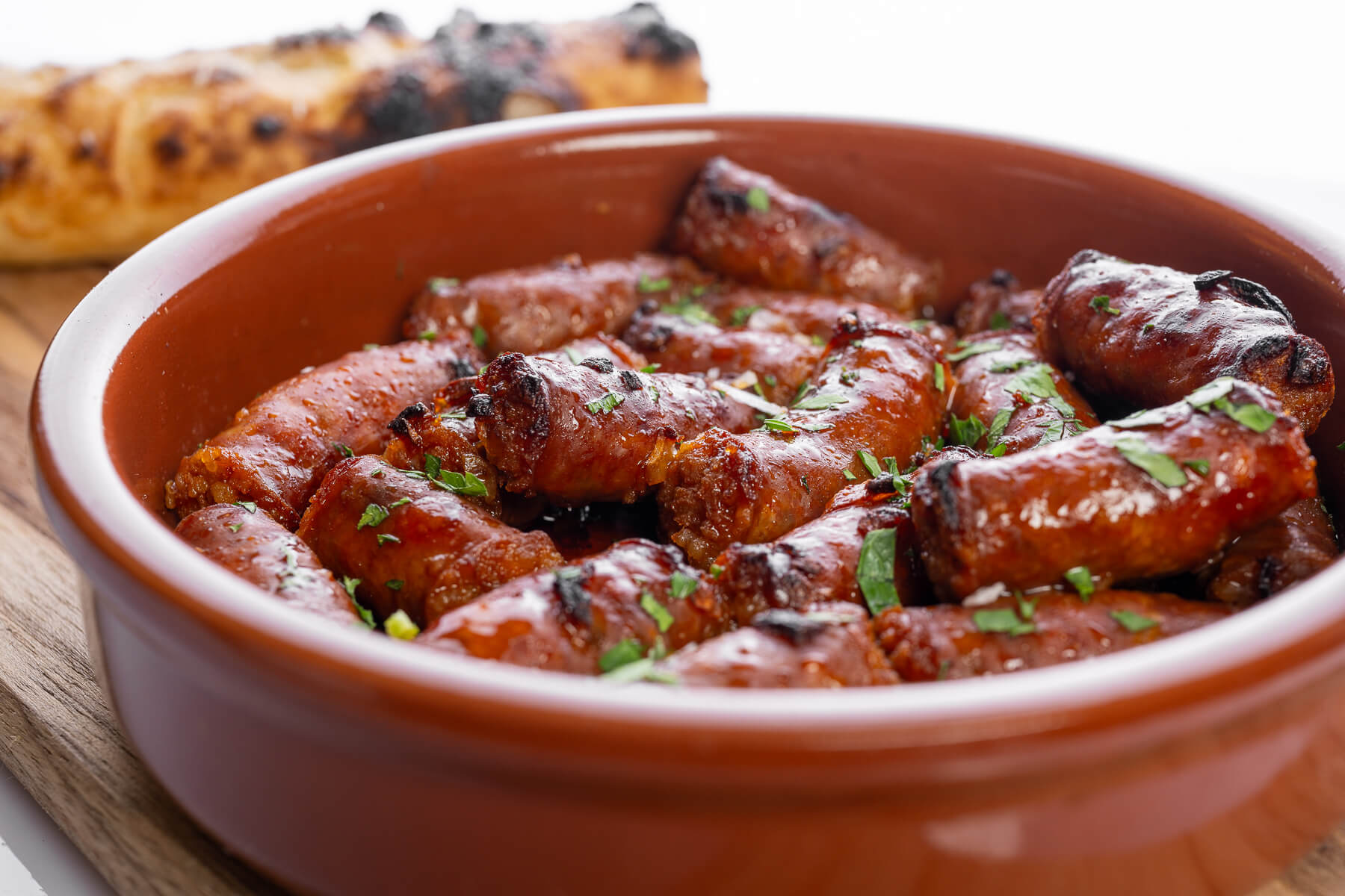 Auténticas Chistorritas de Navarra, servidas en pequeños trocitos para que los disfrutes con nuestro pan especial de la casa.