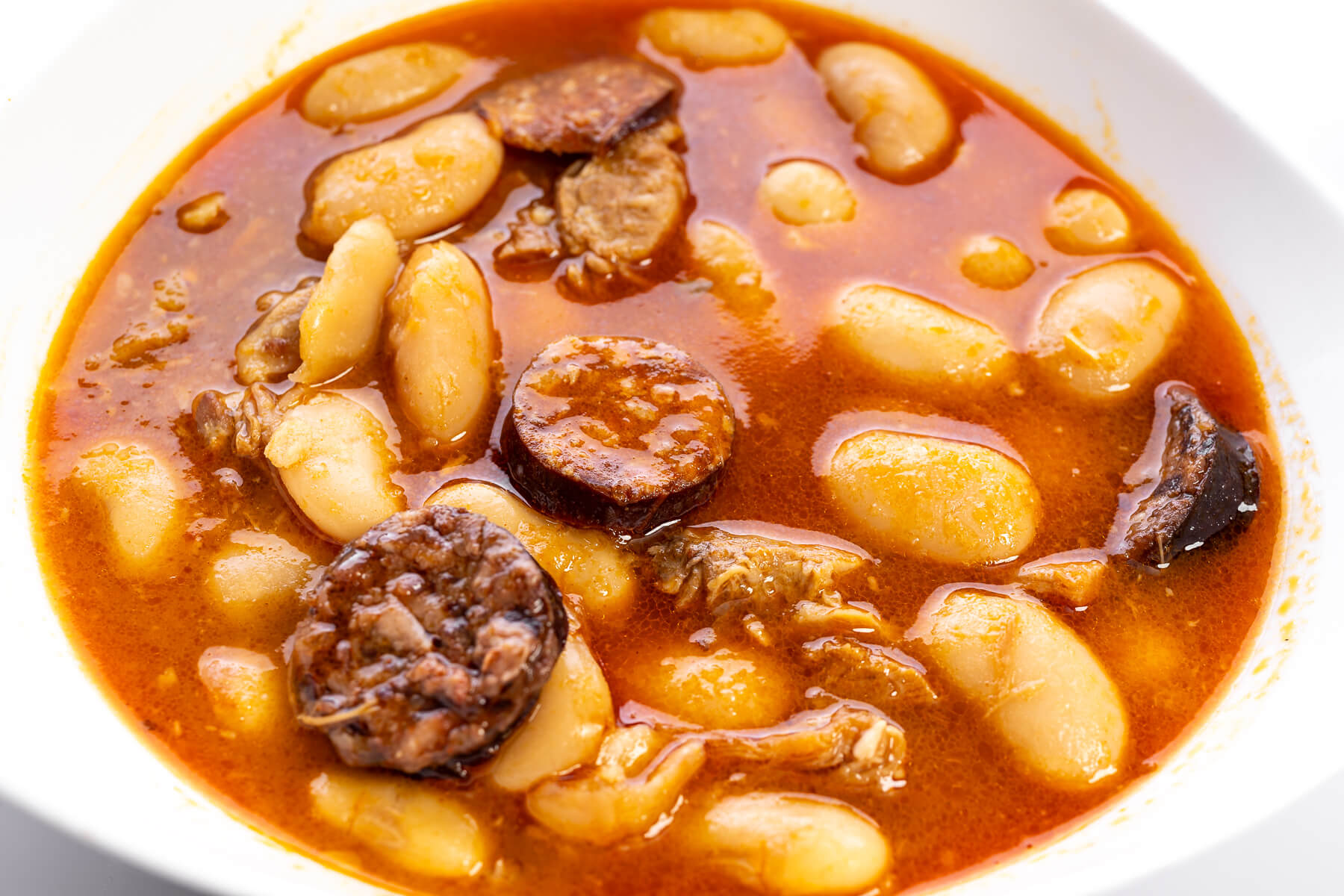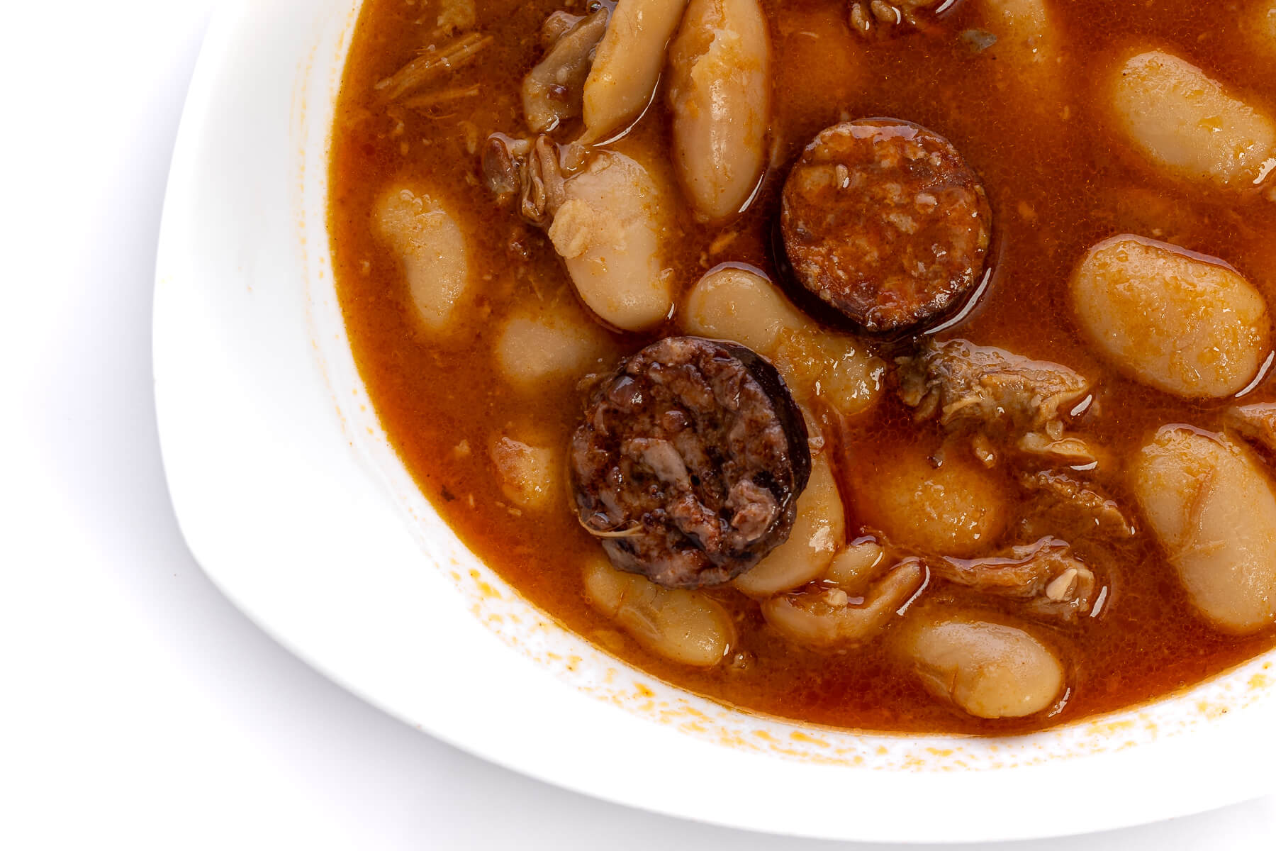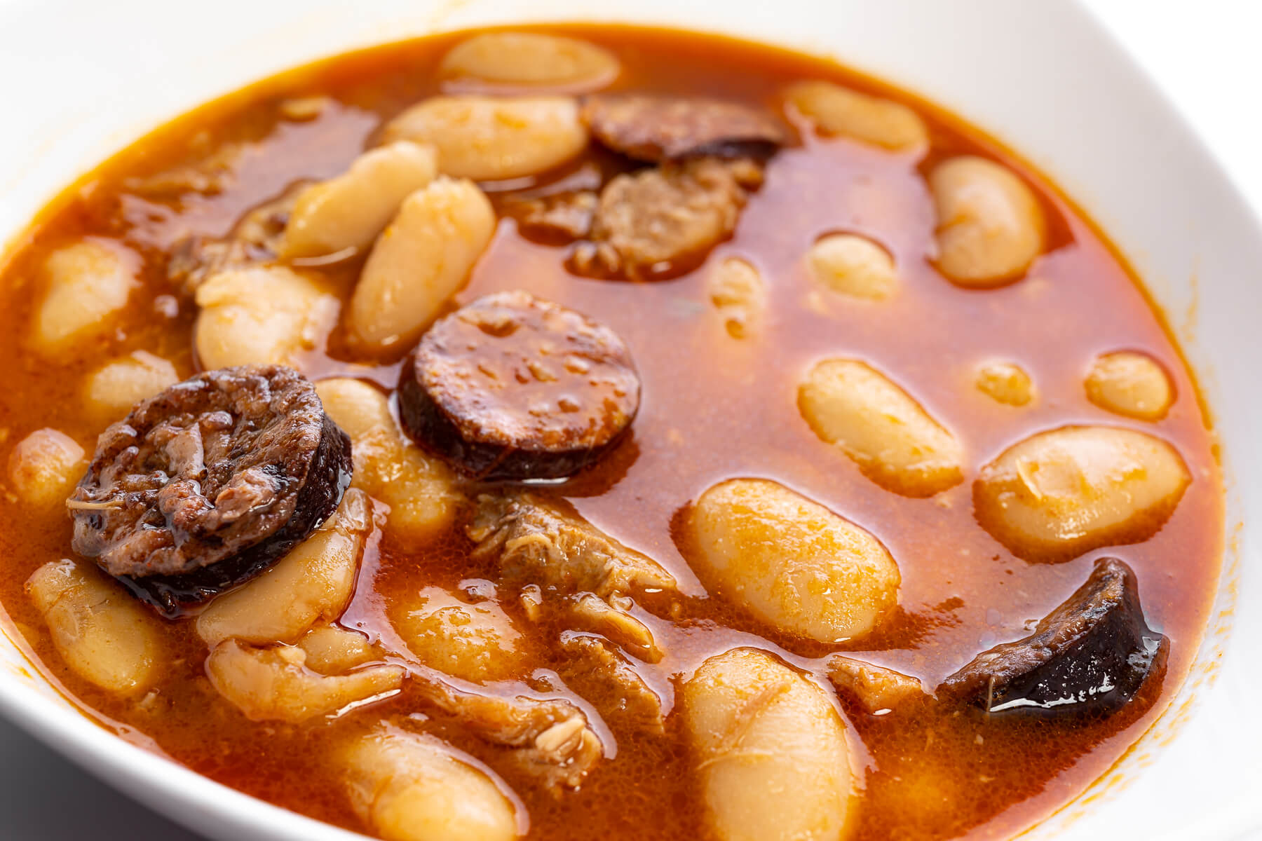 Suculentos judiones cocidos a fuego lento con tiernas piezas de cochinillo.