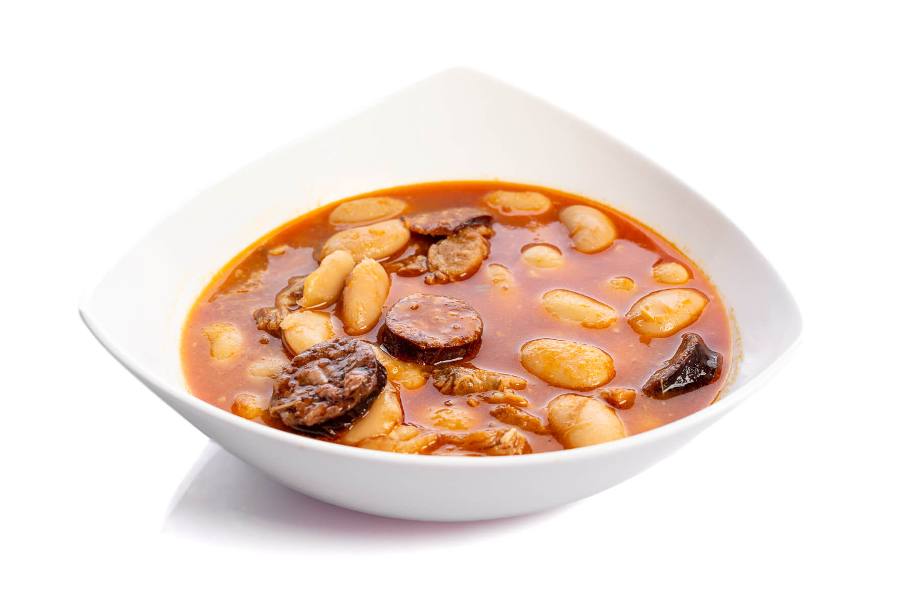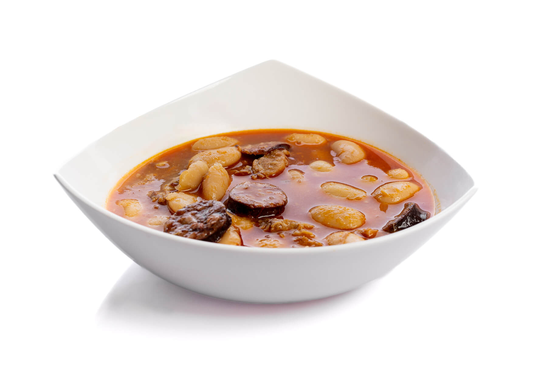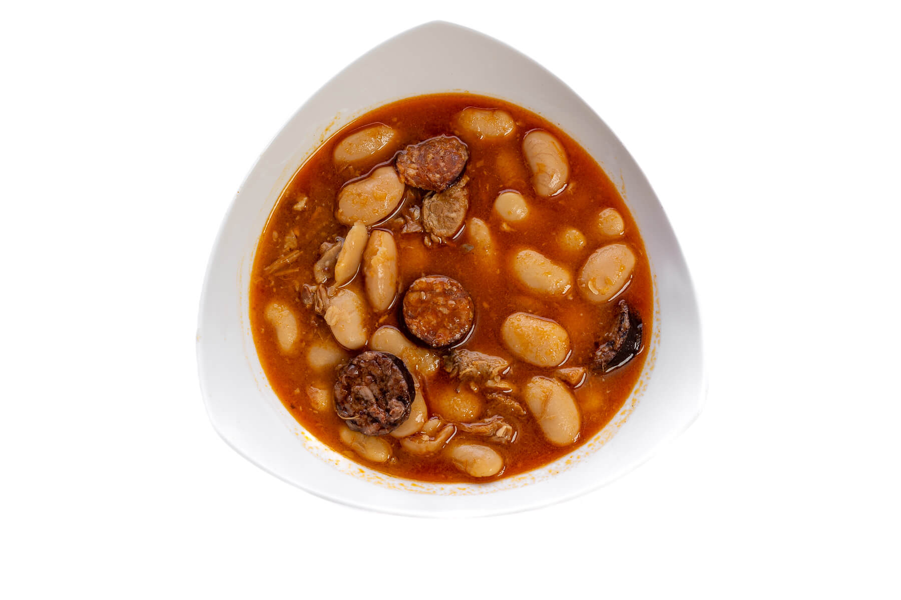 Suculentos judiones cocidos a fuego lento con tiernas piezas de cochinillo.